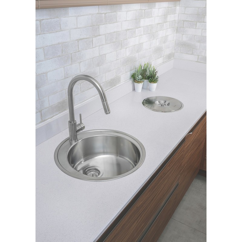 Rond spoelbak inbouw-Inclusief valve 4 1/2″-Inbouw vuilnis-emmer niet inbegrepen