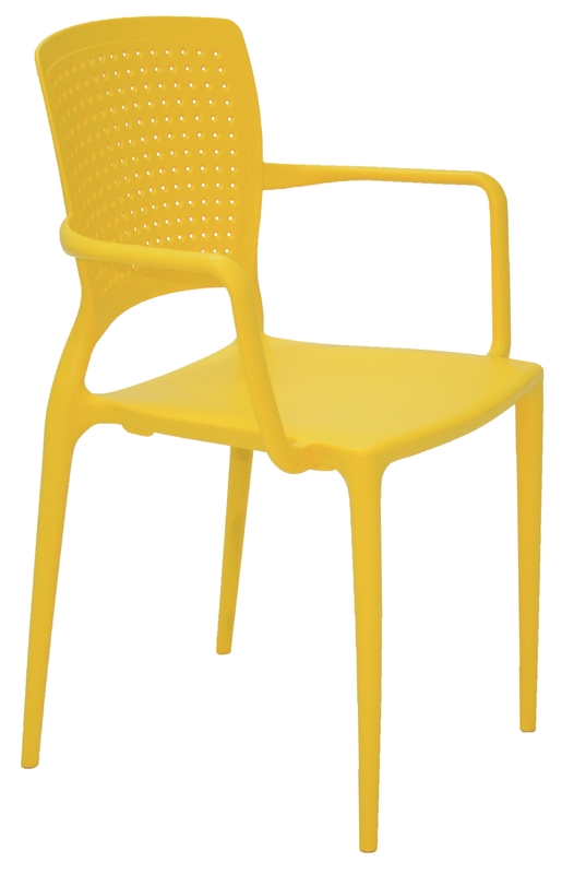 Tramontina Safira Yellow Polypropylene and Fiberglass Chair with Armrests. Maximum Recommended Weight: 182 kg. Is the perfect choice to make your house complete and ensure more comfortable and beautiful spaces. Inspired by one of the best-known gemstones, it is a distinctive chair and ensures high resistance.